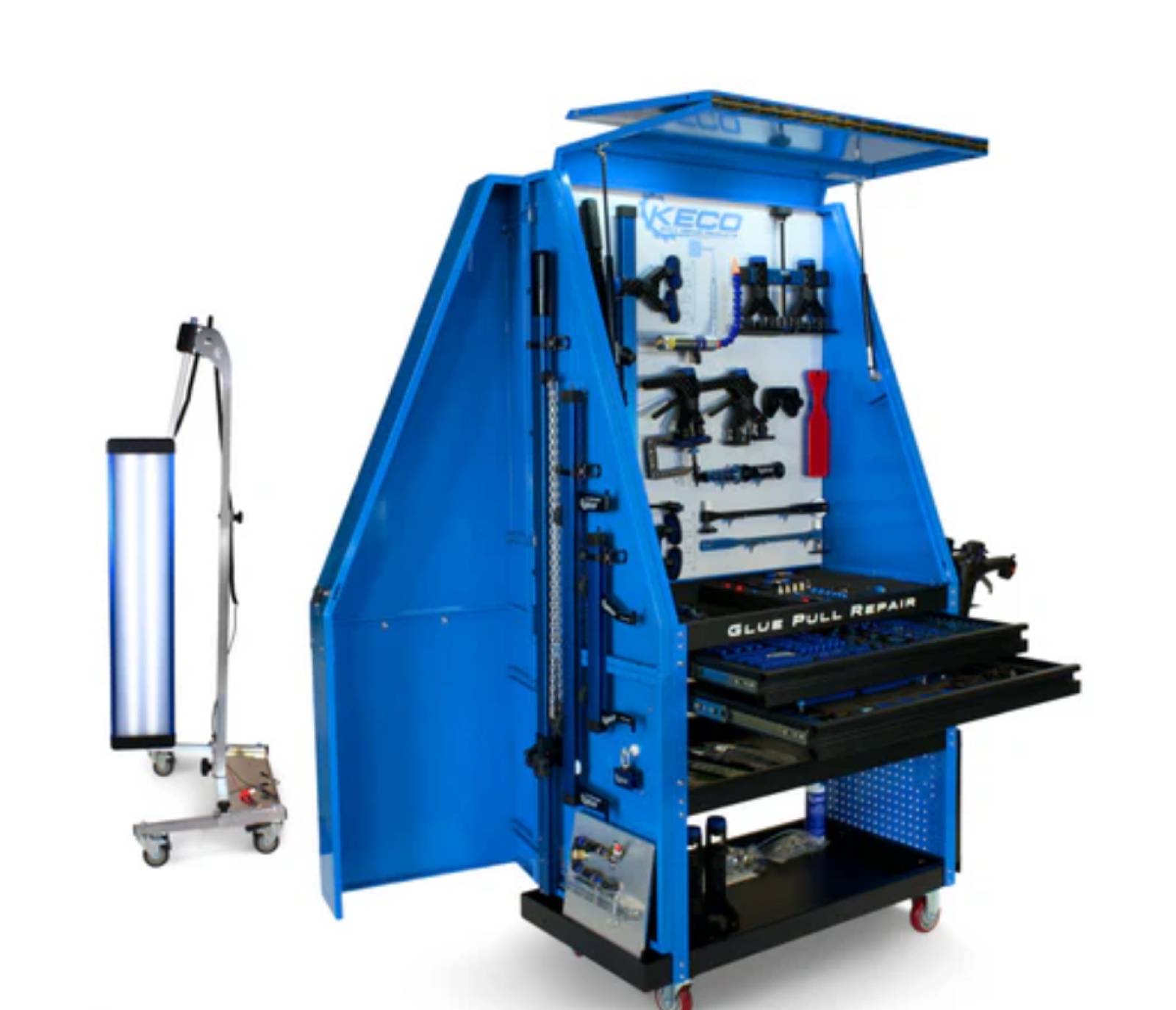 Le PDR Collisions et le GPR s'appuient sur des procédés proches des réparations traditionnelles de carrosserie, tout en exploitant des outils innovants. Parmi ces outils, les équipements de la marque KECO se démarquent, jouant un rôle clé dans le redressage GPR pour les collisions. Ces outils, tels que les galets et accessoires spécifiques, permettent de redresser les bosses avec une précision exceptionnelle, même dans les situations les plus techniques.