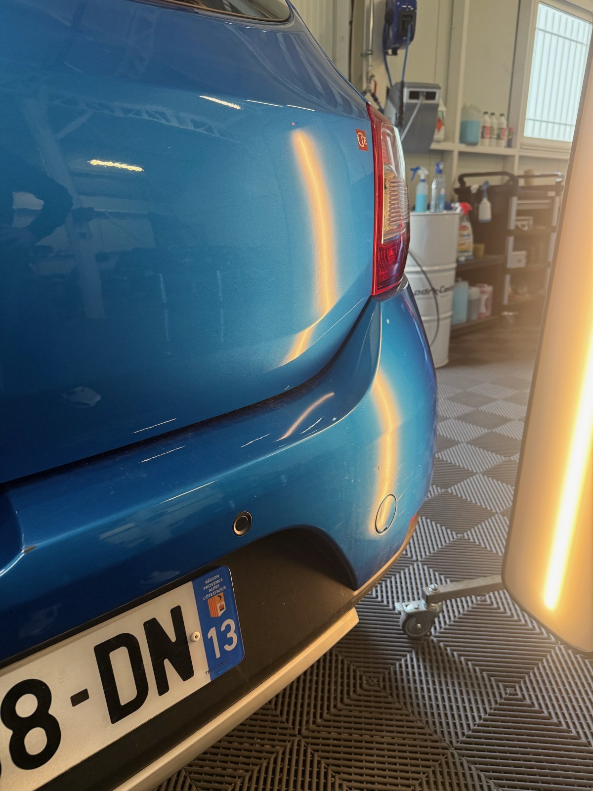 Redressage DSP sur hayon Dacia : une réussite signée Jérémy, diplômé du CQP Débosseleur sans peinture